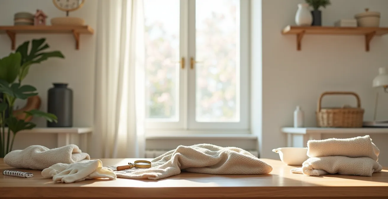 Et si la véritable solution n’était pas une collection d’astuces, mais un véritable protocole d’hygiène domestique, une méthode systématique et rassurante ? La tranquillité d’esprit ne vient pas de l’espoir, mais de la certitude. L’approche que nous allons détailler va au-delà du simple nettoyage. Elle se décompose en trois phases logiques et infaillibles : l’Inspection préventive, le Traitement ciblé et la Purification finale. En maîtrisant ce système, vous ne vous contenterez pas de laver un vêtement ; vous allez le sécuriser, le purifier et vous l’approprier entièrement, transformant chaque pièce de seconde main en un ajout aussi propre et sûr à votre garde-robe qu’un vêtement neuf.